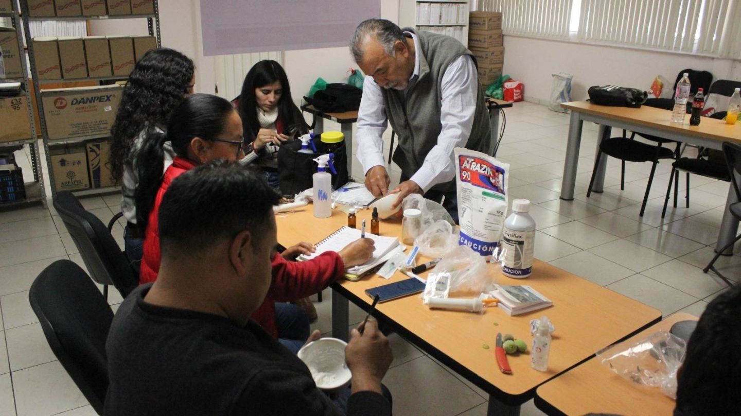 El personal del Icamex realizaron una práctica que consistió en la elaboración de algunas soluciones para el control de gorgojo en el maíz, hongo en el nopal, fertilizante para durazno; así como un repelente hecho a base de refresco de cola que es aplicado para semillas, mismos que serán objeto de estudio y tendrán un seguimiento por parte del Instituto.