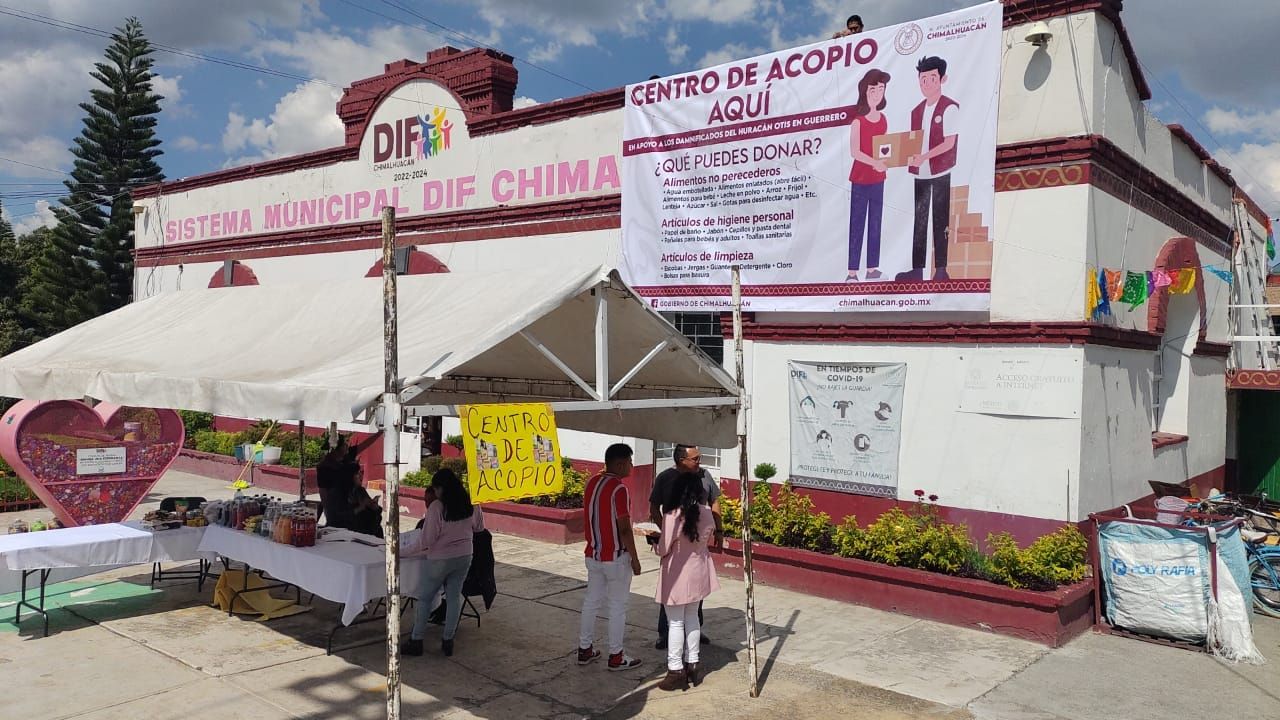 CHIMALHUACÁN, MÉX., a 27 de octubre de 2023.- En apoyo y solidaridad con los damnificados por el huracán Otis, que afectó a la población del estado de Guerrero y, particularmente, la ciudad de Acapulco, el Gobierno de Chimalhuacán instaló tres Centros de Acopio, con el propósito de recolectar alimentos no perecederos y artículos de higiene personal y de limpieza.
