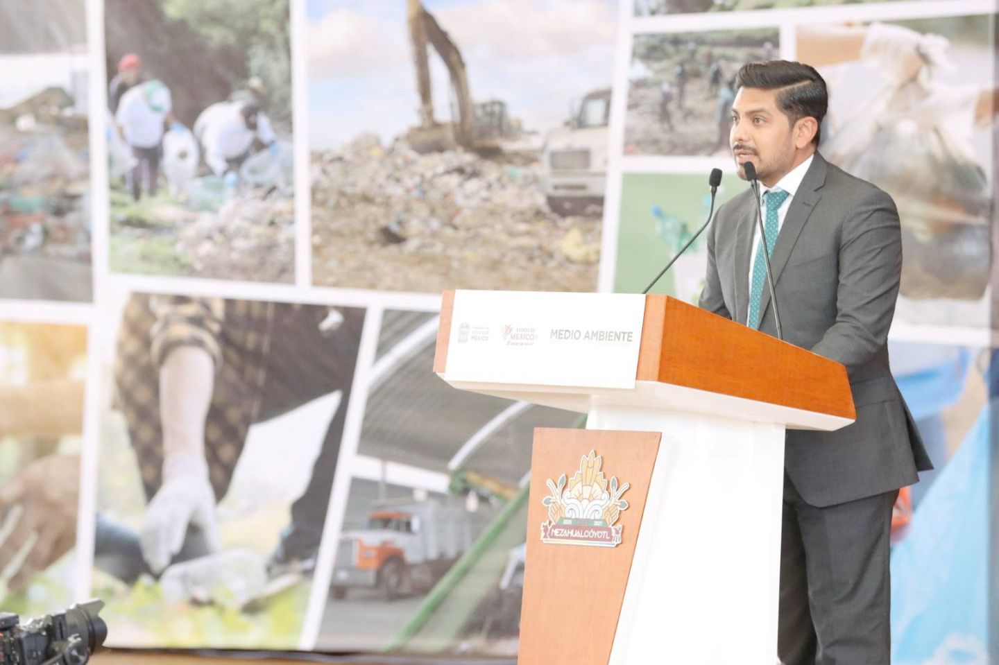 NEZAHUALCOYOTL, MEX., a 14 de marzo de 2025.- El presidente municipal de Ciudad Nezahualcóyotl, Adolfo Cerqueda, encabezó la firma del convenio de colaboración Basura Cero, con el cual se establecen las bases de cooperación y coordinación entre 60 municipios del Estado de México, la Secretaría de Infraestructura, Comunicaciones y Transportes (SICT) y la Secretaría del Medio Ambiente y Desarrollo Sostenible del Estado de México (SMAyDS).