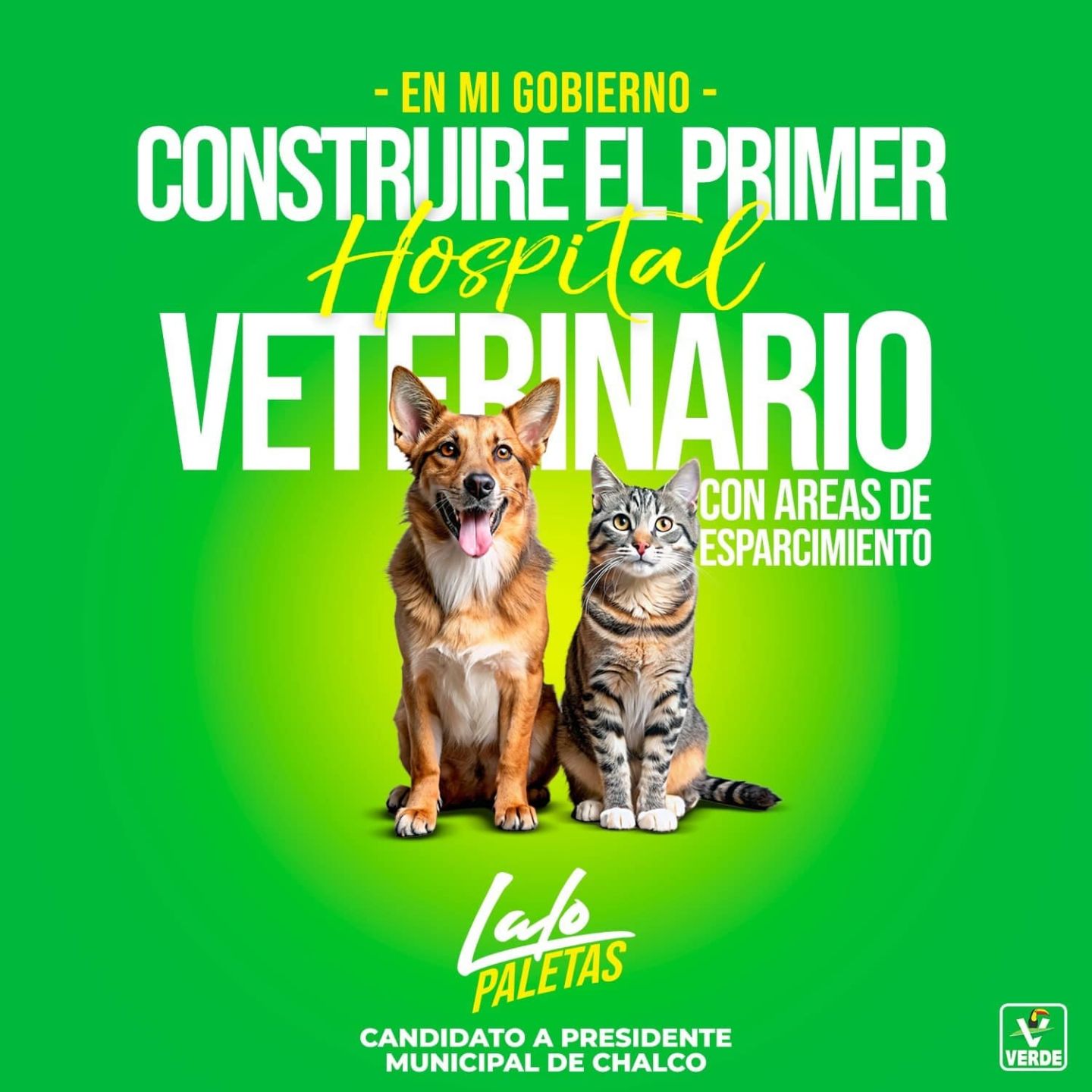 Dentro de mis propuestas de gobierno, -dijo Lalo Paletas-, se encuentra la de construir un hospital veterinario, así como un área de esparcimiento y ejercitación para estos seres sintientes.