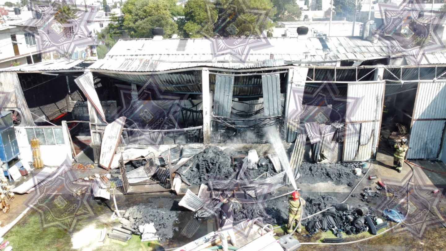 TEXCOCO, MEX., a 29 de noviembre de 2023.- El trabajo coordinado del grupo de contingencias Texcoco permitió controlar a las 10:30 de la mañana el incendio en una fábrica de trofeos de Santiago Cuautlalpan.