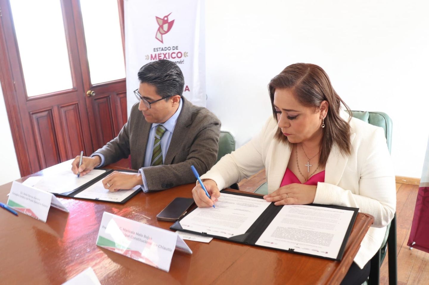 CHIAUTLA, MÉX., a 23 de agosto de 2024.- Con el objetivo de fortalecer la sinergia entre los órdenes de gobierno al momento de inspeccionar que las unidades económicas cumplan con los lineamientos que establece la ley para su operación, Jesús George Zamora, Consejero Jurídico del Gobierno del Estado de México, firmó con Maricela Melo Rojas, Presidenta Municipal de Chiautla, un convenio de coordinación en materia de verificación administrativa.