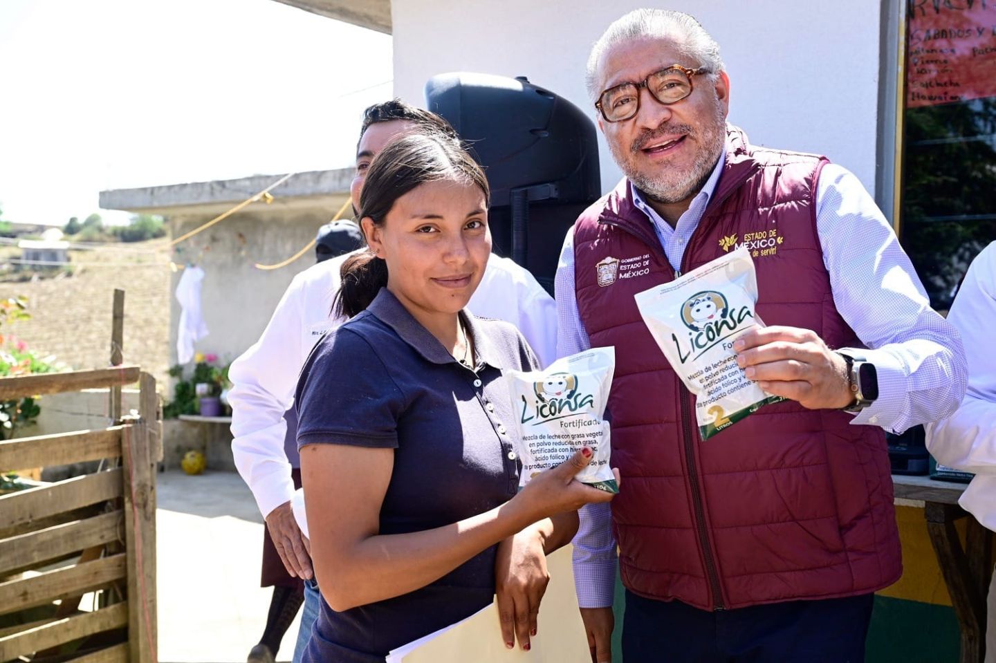 TEXCALTITLÁN, MÉX., a 29 de febrero de 2024.- En un acto de justicia para los habitantes de Texcaltitlán, con representación de la Gobernadora del Estado de México, Delfina Gómez Álvarez, Horacio Duarte Olivares entregó insumos del programa federal Fertilizantes para el Bienestar e inauguró una Lechería Liconsa.