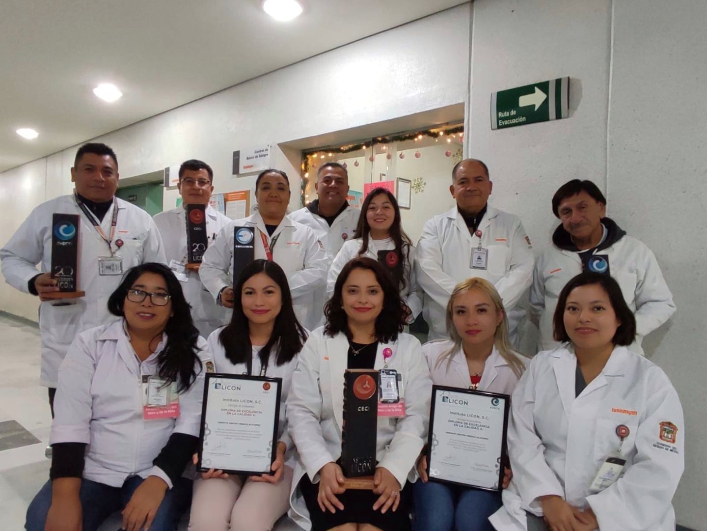 ECATEPEC, MÉX., a 15 de diciembre de 2023.- Por garantizar la calidad y responsabilidad en cada uno de sus procesos, el Banco de Sangre del Centro Médico del Instituto de Seguridad Social del Estado de México y Municipios (ISSEMYM) en Ecatepec, recibió la Presea y el Diploma a la Excelencia y a la Calidad, por el Instituto Licon, un organismo externo que cada año evalúa a todos los Bancos de Sangre de México.