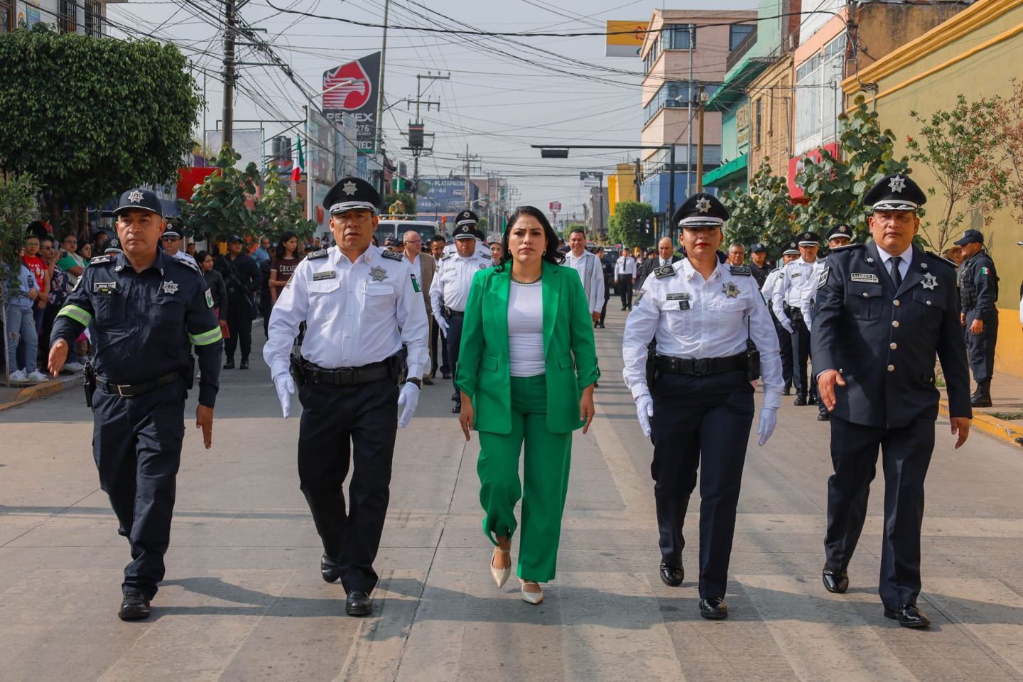 La presidenta municipal de Texcoco, Elizabeth Terrazas Ramírez, regidores y las direcciones de Seguridad Pública y Movilidad iniciaron el desfile conmemorativo por las calles céntricas de Texcoco que partió de la Fábrica de Artes y Oficios (FARO) sobre la avenida Juárez, tomaron Allende hacia el oriente y dieron vuelta en Guerrero y después en Nezahualcóyotl para pasar frente a las instalaciones de la presidencia municipal y finalizar en Juárez y el jardín Constitución.