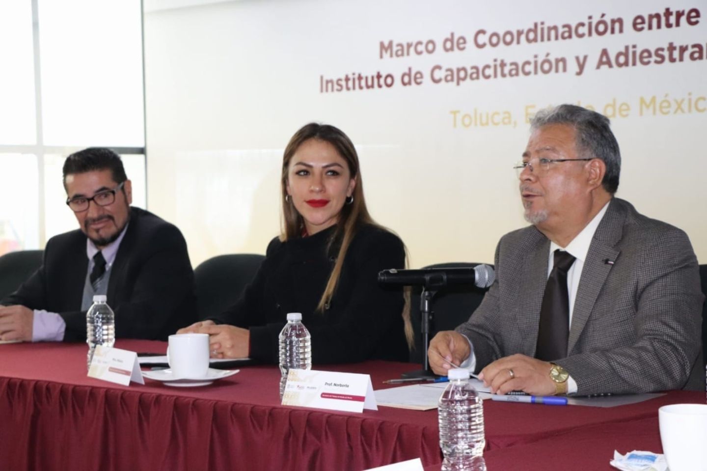 TOLUCA, MÉX., 13 de diciembre de 2023.- Con el objetivo de realizar actividades conjuntas que permitan a las mexiquenses capacitarse e incorporarse a ámbitos laborales, los titulares de las Secretarías de las Mujeres (SeMujeres), del Trabajo y el Instituto de Capacitación y Adiestramiento para el Trabajo Industrial (ICATI) firmaron un Convenio Marco de Coordinación que contribuirá, entre otras cosas, a alejar a las mujeres de los círculos de violencia.