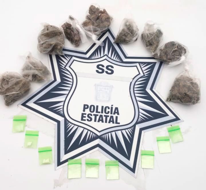 Al interior había nueve envoltorios pequeños de una hierba verde y seca, con características propias de la marihuana. Mientras que, del lado izquierdo de su chamarra, sacó otras cinco dosis de una sustancia blanca en polvo, similar a la cocaína, además de cuatro con aparente droga conocida como cristal.